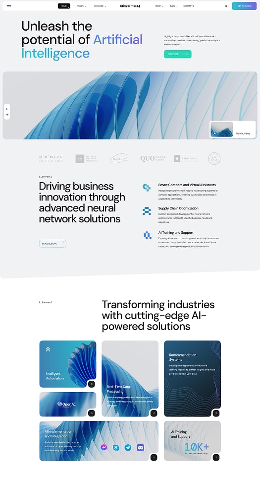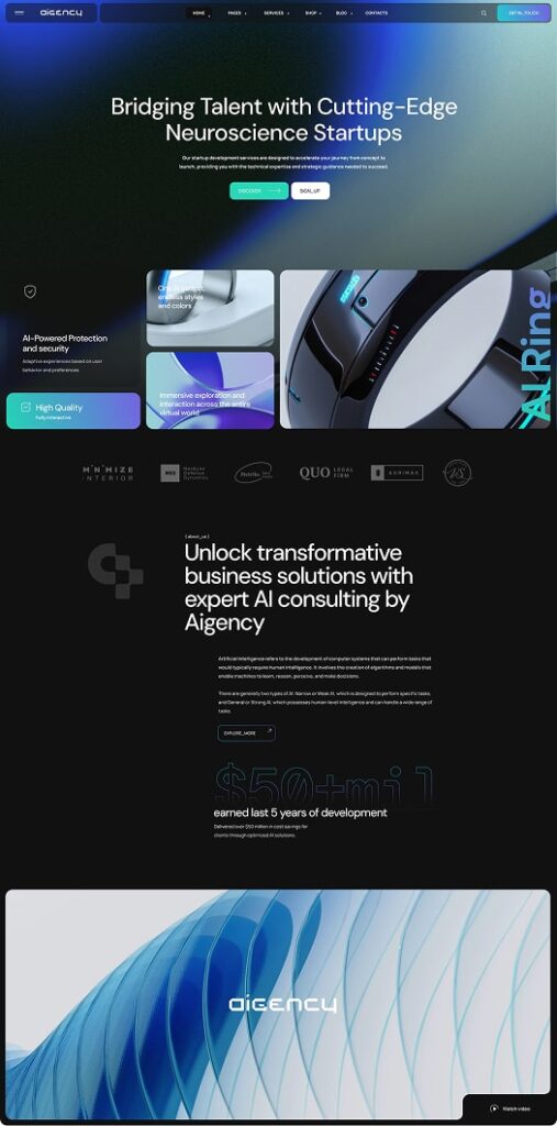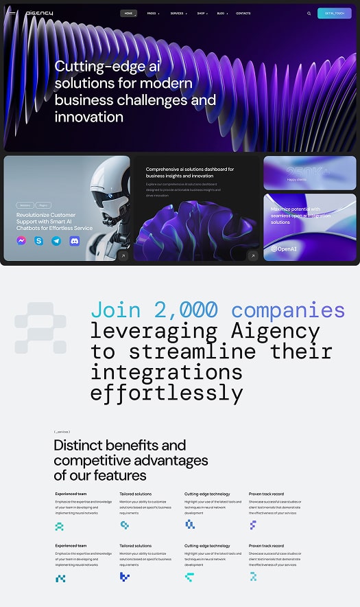 Transforming ideas into intelligent solutions with Aigency WordPress theme